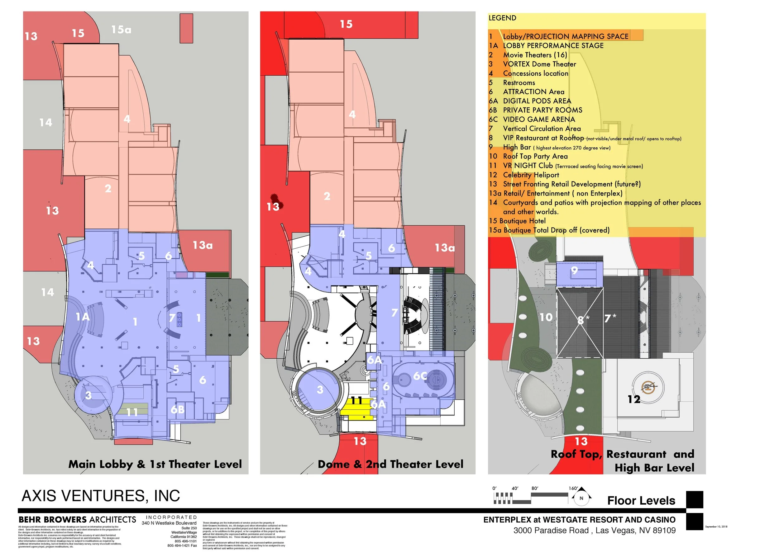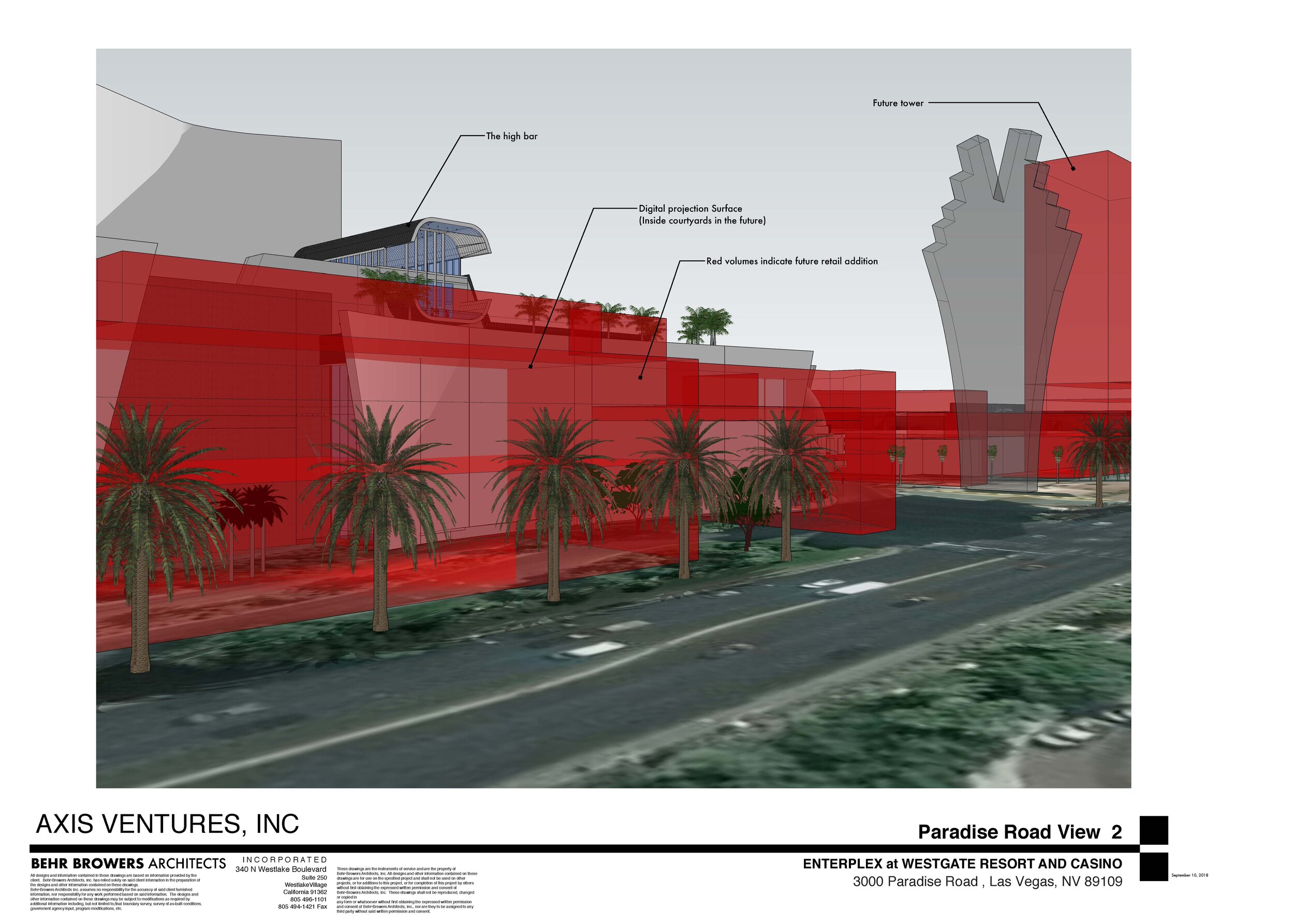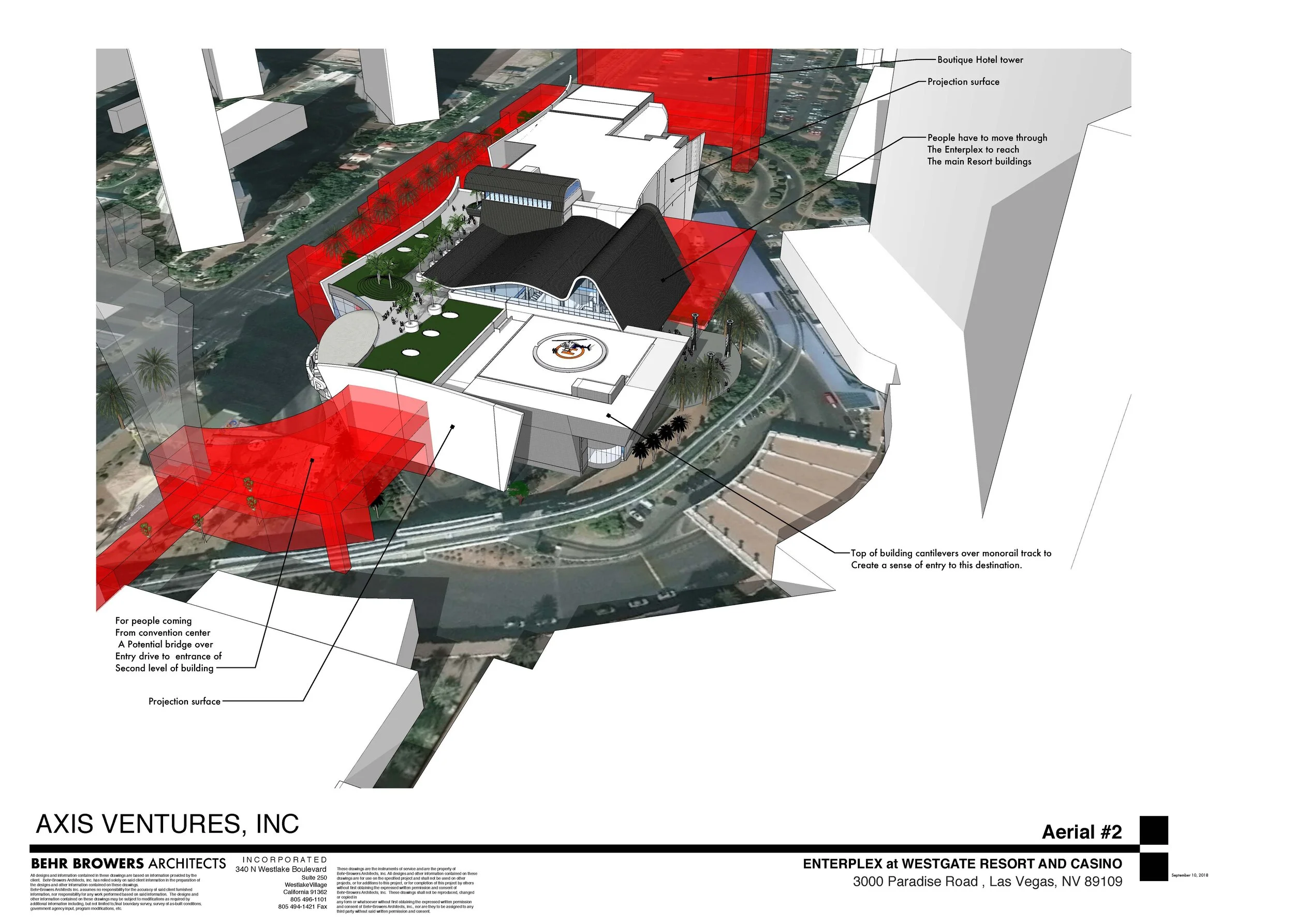 BBA Architecture, Inc. prepared a conceptual study for a very large entertainment center in Las Vegas. In addition to movie theaters, the venue included competitive video gaming spaces, celebration event rooms, restaurants, and cutting edge projection mapping ideas on both the interior and exterior building surfaces. Furthermore, the design included recommendations for additional development around the perimeter of the center that included hotel rooms, retail venues, and restaurants. It was designed to be integrated to the Monorail System serving the Hotel Venue.