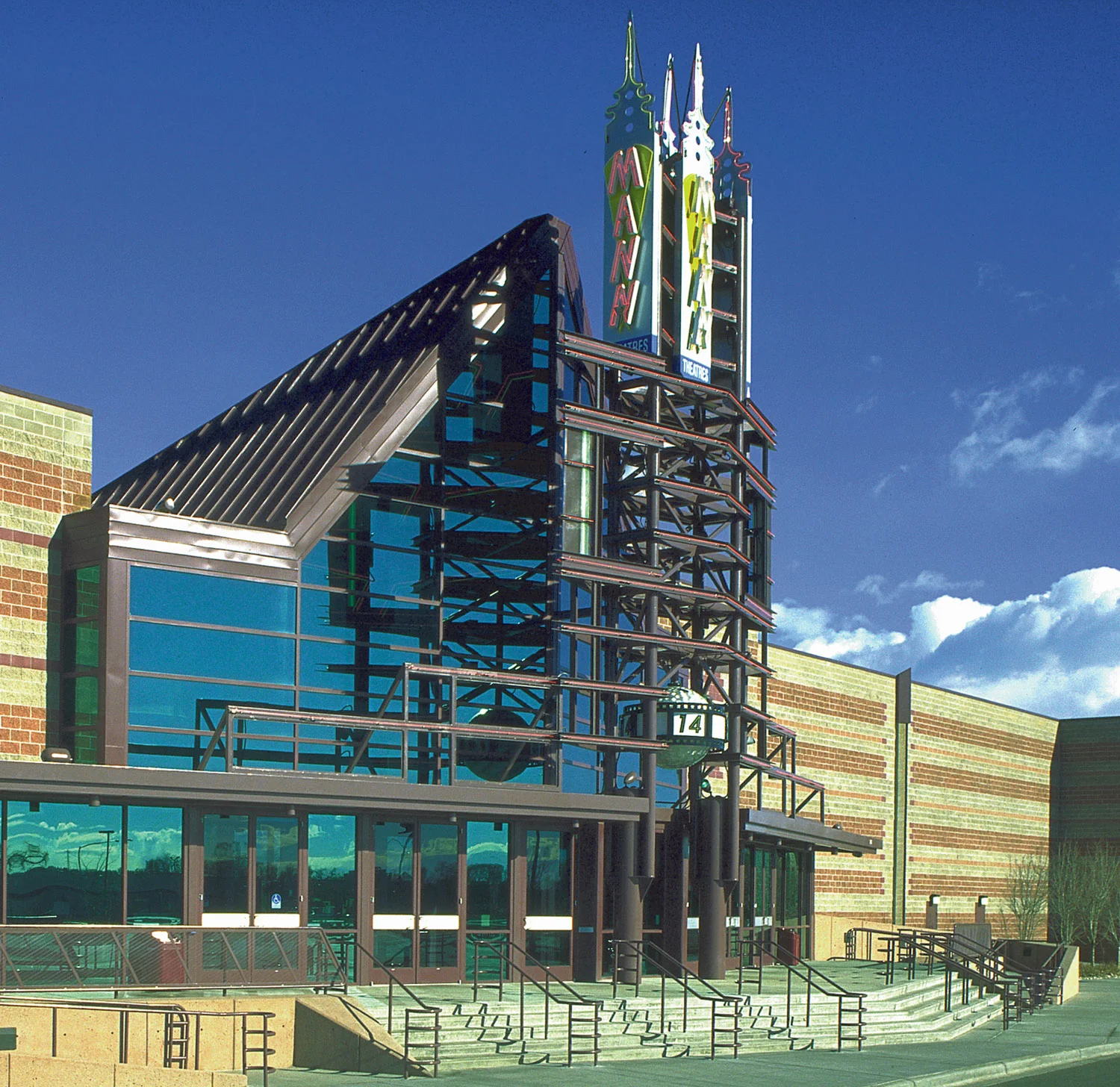 Located near the town’s redevelopment district this 14-plex-stadium theater was designed to help bring people and nightlife to the area. It is part of a larger redevelopment site that includes various restaurants and transportation facilities.