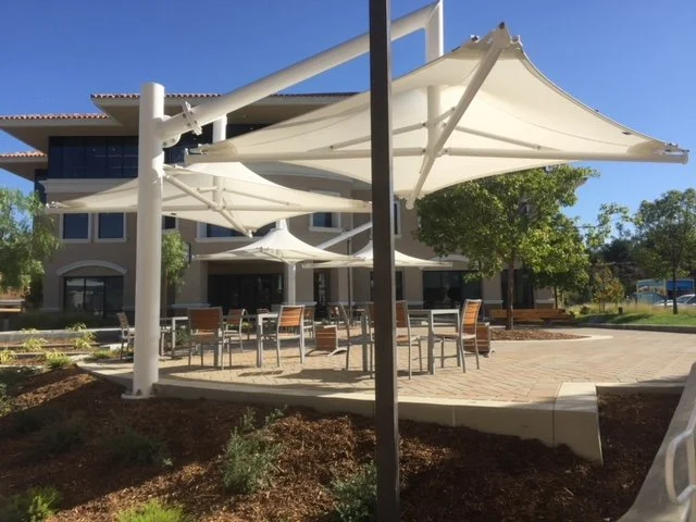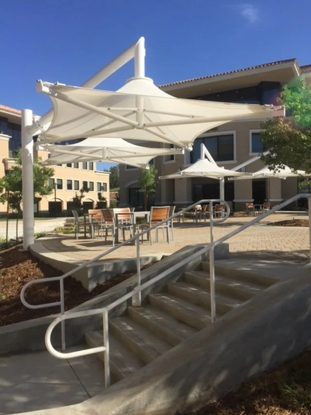 The building design creates a distinctive architecture that is dominated by large well proportioned roofs with broad overhangs. The large overhangs were designed to provide much needed sun control for the ribbon glass wrapped top story spaces that had the most dramatic views of the surrounding mountain ranges. While modern in design the buildings do incorporate details with classical references that help to maintain a harmonious dialogue with the surrounding context.
