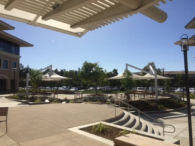 The office portion of the project was designed to provide numerous growth and expansion scenarios for various user types. The buildings are arranged to be connected by an outdoor pedestrian network with minimal driveway interruptions. In fact there are only two. Its design also gave developers a number of options in building the project. It allowed for a building by building development, or for two 3 building corporate campuses or even the possibility of a single user for the entire programmed office area. It was planned that under that last scenario the central space would easily become a green commons to link all the buildings with one level of parking located below it.